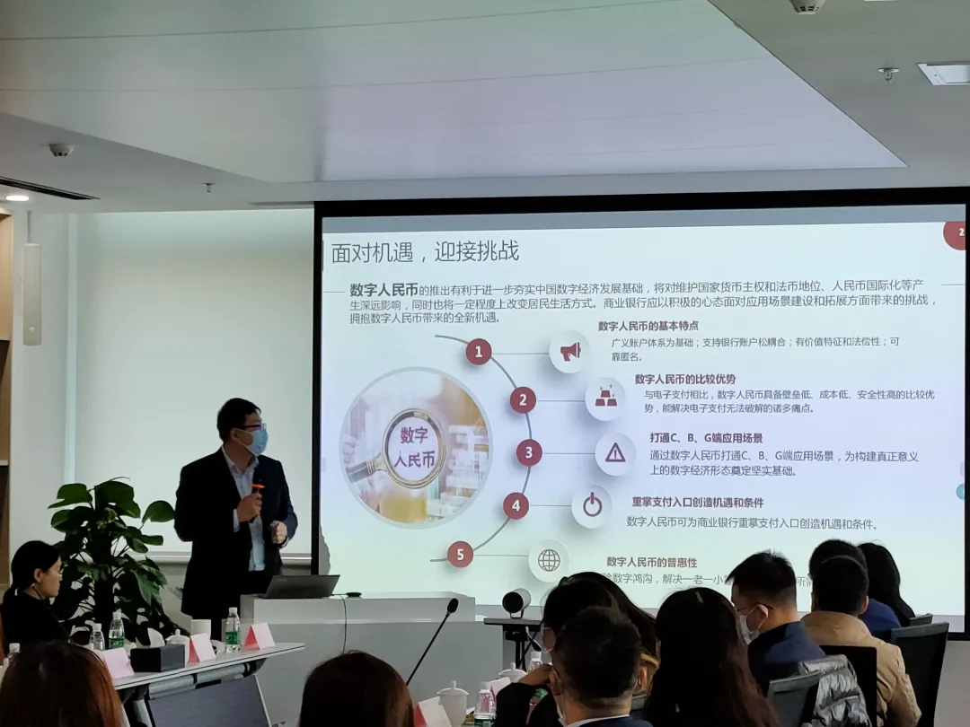 中国银行北京使馆区支行交易银行部主任李肖阳进行中国银行数字人民币创新性应用场景解读,介绍了中国银行在数字人民币应用方面的优势以及其解决的痛点。我们要面对机遇,迎接挑战。