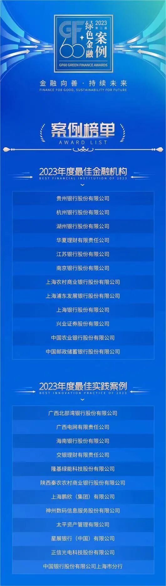 本次论坛还揭晓了2023年“GF60绿色金融案例”的评选结果,BB贝博艾弗森官网荣获2023年“GF60绿色金融·最佳实践案例”。“GF60绿色金融案例”旨在表彰绿色金融领域具有突出表现的标杆企业和优秀实践,为绿色金融发展提供示范标杆,鼓励持续探索绿色金融创新与发展。“最佳实践案例”聚焦绿色发展潜力,着重考察企业案例在环境、社会和经济等方面的表现状况,同时围绕产品创新能力、低碳科技赋能、社会责任履行等方向对案例进行综合考评。